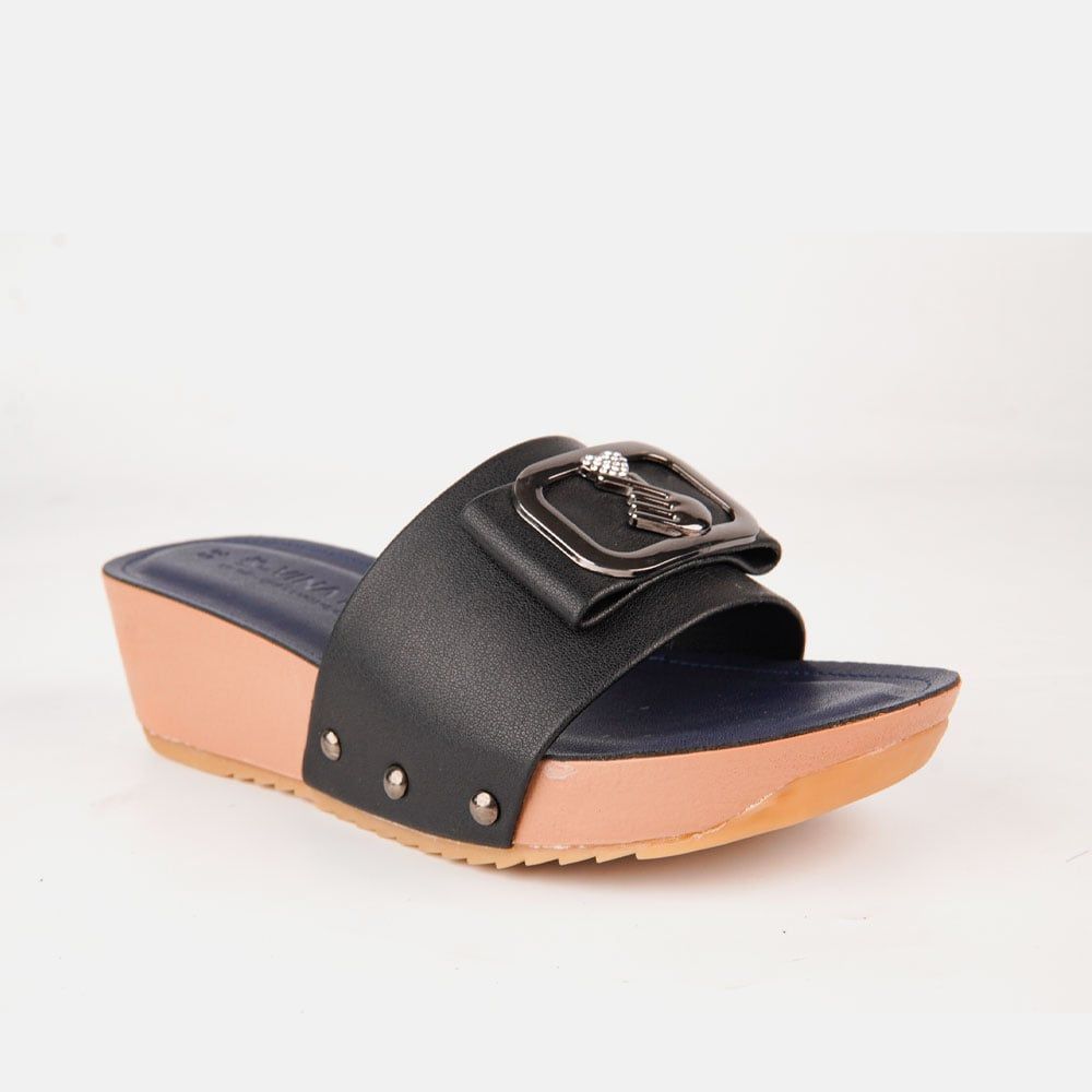 Dép đế xuồng nữ VINA THI - C57.ED037 mang đến sự kết hợp hoàn hảo giữa phong cách hiện đại và cảm giác thoải mái khi mang. Với thiết kế quai ngang kèm khóa trang trí tinh tế, đôi dép không chỉ tôn lên vẻ sang trọng mà còn tạo điểm nhấn nổi bật cho đôi chân.