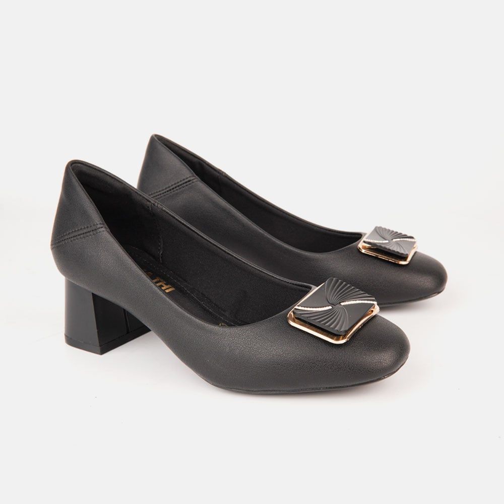 Thiết kế thông minh: Mũi giày bo tròn mềm mại, không gây khó chịu cho ngón chân. Gót giày vuông cao 5cm vững chãi, tạo cảm giác chắc chắn, giúp bạn tự tin sải bước mà không lo bị chênh vênh.