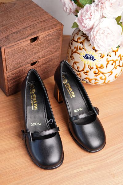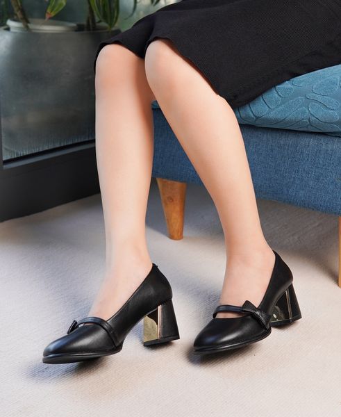 Giày cao gót 7cm mũi tròn đế trụ gắn nơ xinh xắn C54.EG040-Size 40