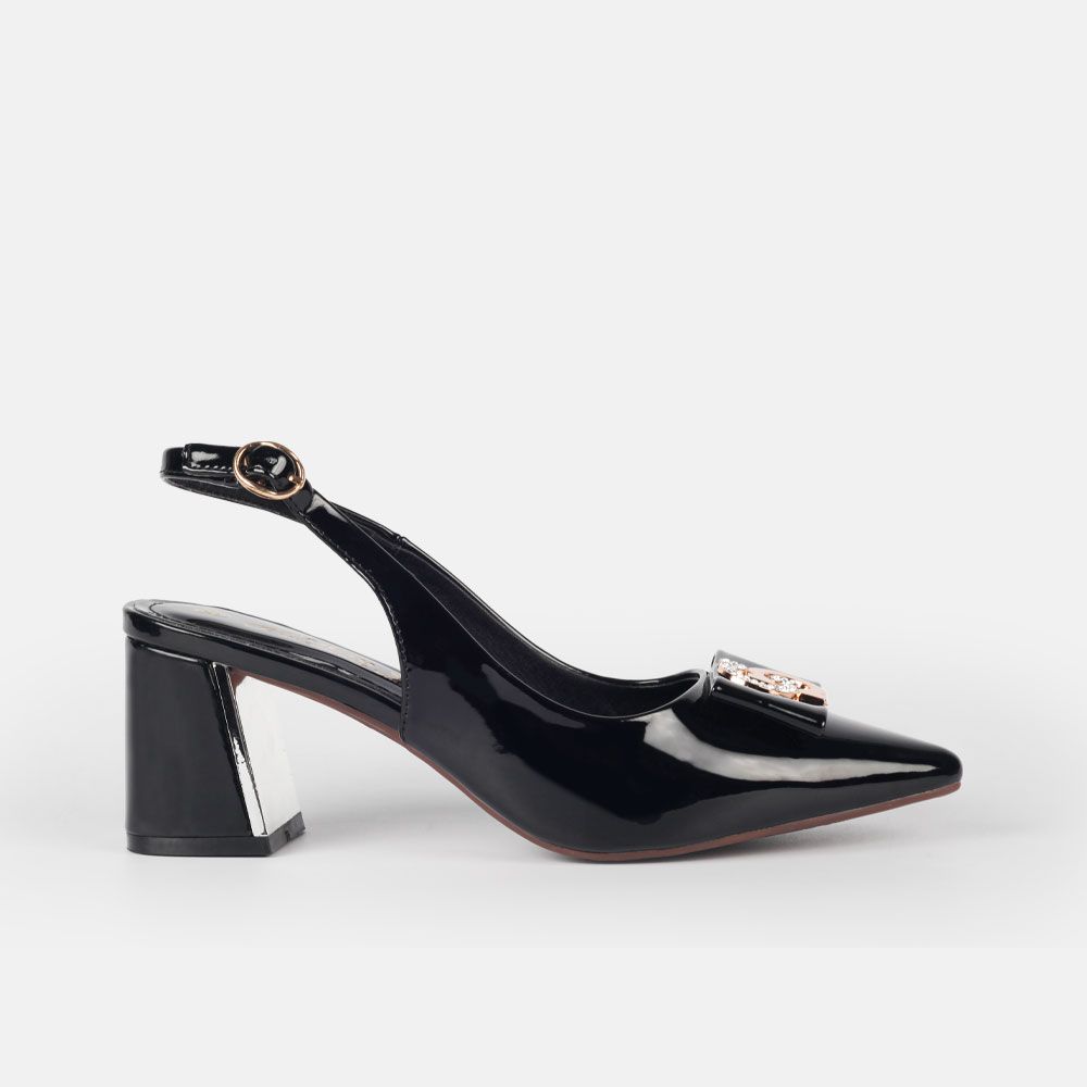 • Điểm Nhấn Nơ Gắn Khoá Đính Đá: Nổi bật trên phần trước của giày là một nơ gắn khoá đính đá, tạo điểm nhấn cho đôi giày và làm tôn lên vẻ đẹp đôi chân người mang.